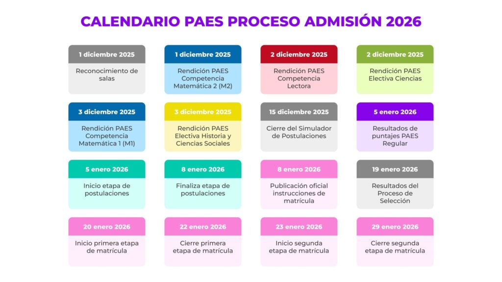 Los resultados de la PAES se publicarán el 5 de enero y el proceso de postulación a las universidades comenzará ese mismo día y se extenderá hasta el 8 de enero de 2026 a las 13:00 hrs.